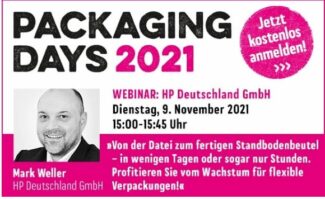 Wie man flexible Verpackungen im Digitaldruck produzieren kann, erklärt Mark Weller (HP) in seinem Online-Seminar „Von der Datei zum fertigen Standbodenbeutel“ am Dienstag, den 9. November 2021 von 15:00 bis 15:45 Uhr. Die Teilnahme ist kostenlos.