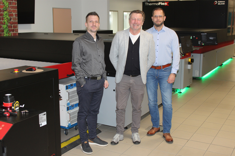 Von links: Sven Neuefeind (Geschäftsführer Neuefeind), Marc Wechsler (Regional Sales Manager Deutschland) und Peter Schreier (Vertriebsleiter Neuefeind) setzten gemeinsam das Projekt der ersten Installation einer XSYS ThermoFlexX Catena+ zur vollautomatischen Flexodruckplattenherstellung im DACH-Raum erfolgreich um