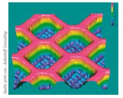 Potential alternative screen rulings could be an 80- or 100-screen, both as a cross cell with 120°-stylus. This already offers a wide range of possibilities for reducing the pick-up volume per square meter and thus reducing the ink application and ink consumption.