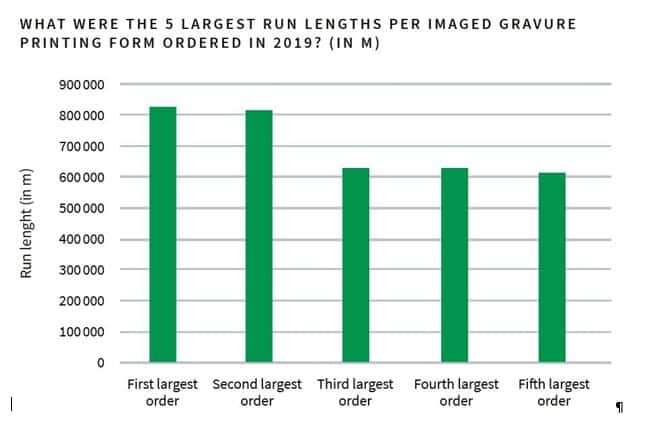 Current innovations in gravure printing aim to further improve its sustainability, for example by developing alternatives to the use of chromium trioxide (CrVI). An analysis of job sizes has shown that there are still print runs of up to 800,000 metres. Monofilm substrates with thicknesses below 25 micron is the most commonly used substrate.