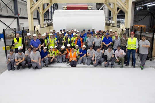 Die stolze Mannschaft mit dem ersten Papier (Quelle: Koehler Group)