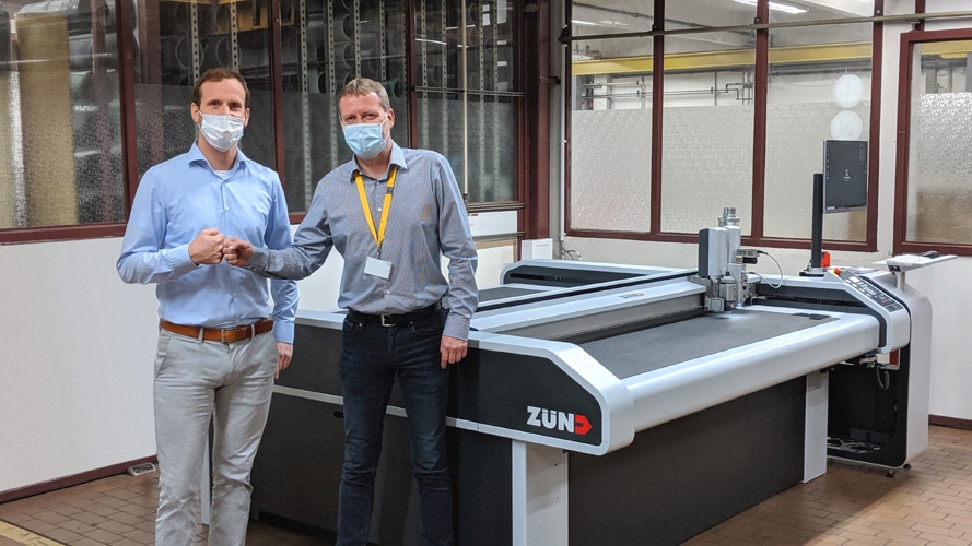 Ein weiterer Bestandteil der Fertigungslinie ist der Schneidplotter von Zünd, der die Elastomer-Flexodruckplatten zuschneidet. Der Drucker kann die zugeschnittenen Platten direkt auf den Sleeve montieren, ohne dass er weitere Vorarbeiten leisten muss. „Für unseren Kunden bedeutet das eine wesentliche Einsparung an Kosten, Kapazitäten und Zeitaufwand“, so Uschok. „Kurze Durchlaufzeiten bieten dem Drucker darüber hinaus eine große Flexibilität bei der Produktionsplanung.“