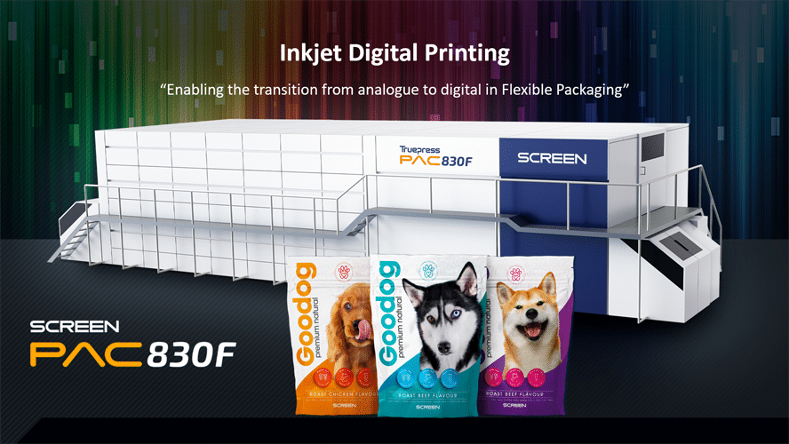Screen Graphic Solutions hat mit der Truepress PAC830F eine neue Inkjet-Digitaldruckmaschine in den europäischen Markt für flexible Verpackungen eingeführt. Aufgebaut auf der bewährten und ausgereiften Inkjet-Technologie von Screen bietet sie den Anwendern vielversprechende Möglichkeit zur Erweiterung ihrer Druckkapazitäten wie auch zur Verbesserung der Rentabilität.