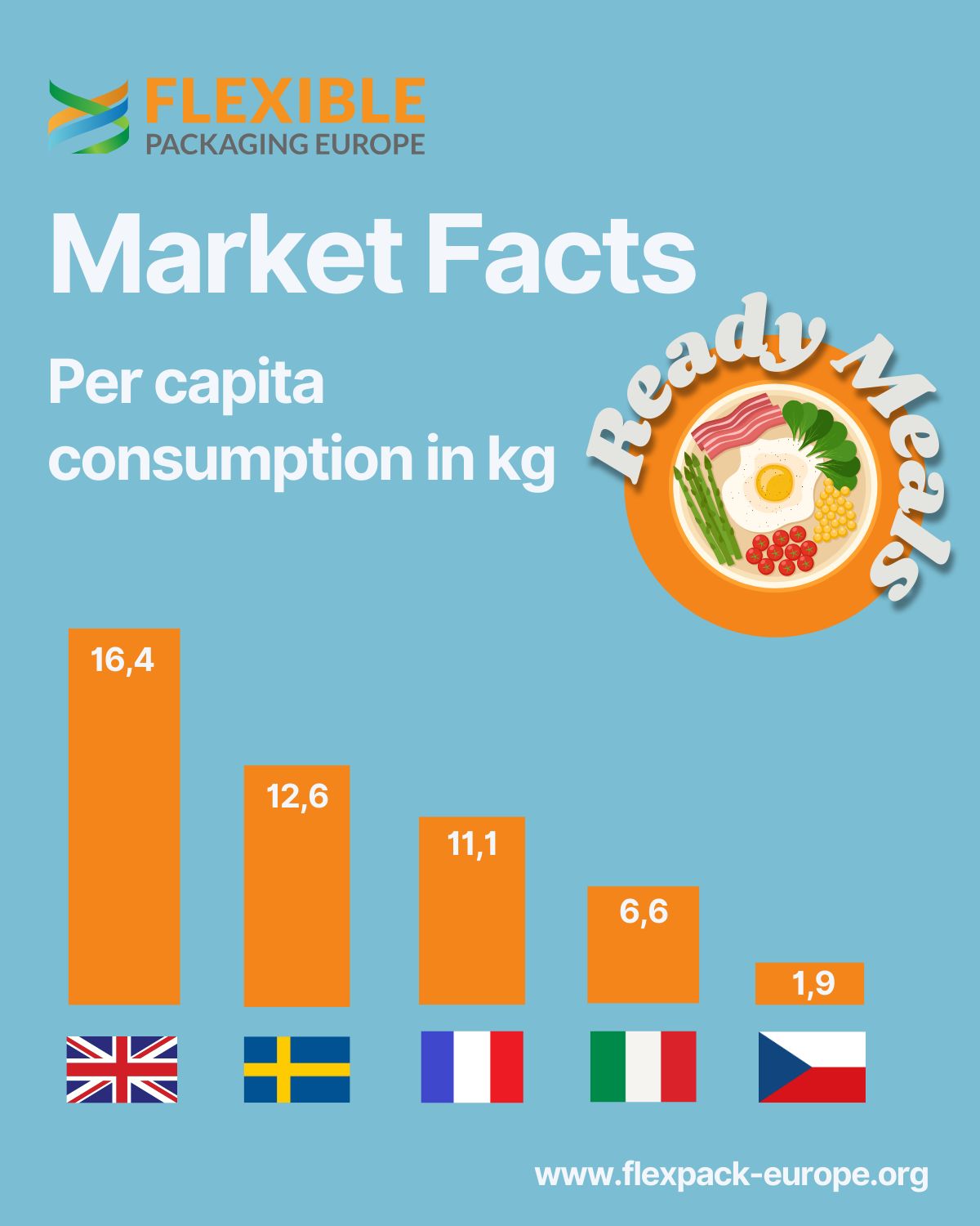 Eine aktuelle Erhebung von Flexible Packaging Europe zeigt deutliche Unterschiede im Pro-Kopf-Verbrauch von Fertiggerichten innerhalb Europas. Die Grafik verdeutlicht, dass der Konsum stark von kulturellen Essgewohnheiten, Arbeitsalltag und gesellschaftlichen Einstellungen zum Thema „Convenience Food“ geprägt ist.