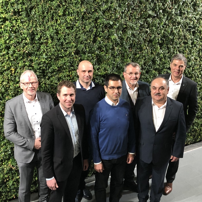 Von links: Helmut Huber, CEO Brückner Maschinenbau, Sebastian Ruhland, Senior Sales Manager Brückner Maschinenbau, Blagomir Todorov, Maintenance Manager Plastchim-T, Beyan Faik, Managing Director Plastchim-T, Karl Zimmermann, Sales & Marketing Director Brückner Maschinenbau, Aydan Faik, Eigentümer Plastchim-T, Peter Mertes, Head of Sales Europe, CIS, Maghreb Brückner Maschinenbau (Quelle: Brückner Maschinenbau)