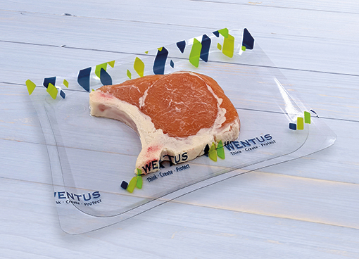Wentopro SkinTight 20 FS lässt das Packgut in noch glänzenderem Outfit erstrahlen. Diese hochtransparente Barrierefolie umschrumpft Produkte wie Fleisch oder Fisch auf einen besonders flachen Produktträger aus Karton, der mit einem hauchdünnen Liner aus Kunststoff überzogen ist. Damit reduziert FlatSkin den Kunststoffeinsatz um bis zu 70%. Wentopro SkinTight 20 E printed rückt das Produkt am POS noch stärker in den Mittelpunkt. Die Skinfolie lässt sich mit bis zu acht Farben im HD-Flexodruck hochwertig bedrucken. Die eingesetzten Farben beweisen während der Erhitzung, der Verformung und dem Rückschrumpf im Verpackungsprozess besondere Beständigkeit und bewahren ihre Strahlkraft.