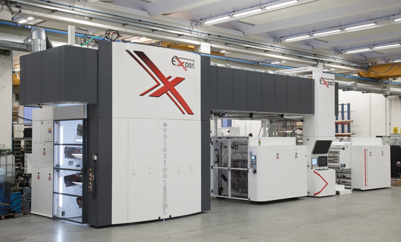 Vor kurzem erzielte Expert srl einen beträchtlichen Erfolg mit der Auslieferung des Topmodels Evolution 1208+1 an ein Unternehmen in Großbritannien. Diese Zentralzylinder-Flexodruckmaschine verfügt über acht Druckwerke sowie eine nachgeschaltete Lackiereinheit.