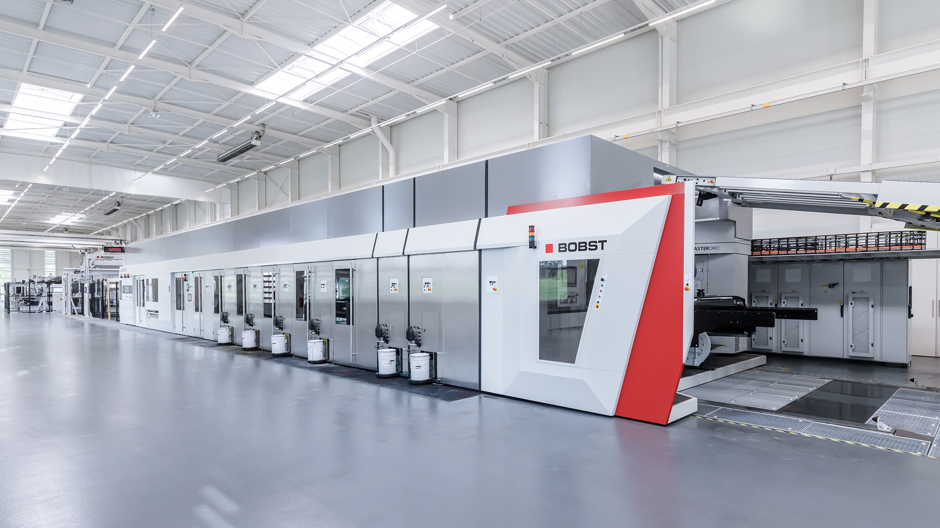 Sie ist eine vielseitige Lösung mit hohem Automatisierungs- und Vernetzungsgrad. Die Inline-Anlage ermöglicht laut Bobst ein jährlichen Output von mehr als 40 Millionen Quadratmetern. Sie vereint die Herstellung großer Stückzahlen einfacher Faltkisten mit der Produktion hochwertig bedruckter und gestanzter Verpackungen. Der Innen- und Außendruck in einem Arbeitsgang, komplexe Stanzungen und schnelle Auftragswechsel entlang der gesamten Linie sind wesentliche Merkmale der neuen Masterline DRO.