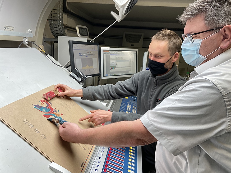 Die ersten Tests der Druck- und Veredelungsmöglichkeiten von Silphie-Papier für Verpackungen laufen bereits