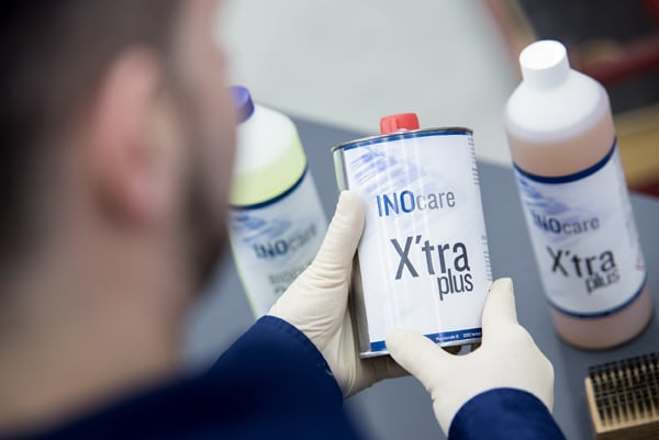 Neben dem richtigen Reinigungsverfahren spielt die Wahl des passenden Reini-gungsmittels eine entscheidende Rolle im Umgang mit Rasterwalzen und Rasterwalzensleeves (Quelle: Inometa)