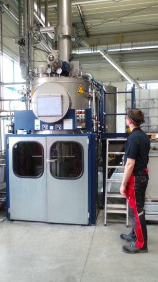 In einer Waschmaschine für Flexo- und Tiefdruckereien werden Verunreinigungen (u. a. Druckfarbe, Drucklacke) vom Waschgut gelöst oder chemisch zerstört und danach durch die mechanische Kraft des Spritz- oder Hochdruckstrahls abgelöst. Gestalt und Menge des Waschgutes (z .B. Rasterwalzen, Sleeves, Tiefdruckzylinder, Farbwannen, Gebinde, Kammerrakel) sowie die Art der Verschmutzung (z. B. mit wasser- oder lösemittelbasierte Farben, Metallic-Farben, 2K-Drucklacken oder UV-Farben) bestimmen die Anlagentechnik der Waschmaschine. Als Reinigungsmedium kommen Lösemittel oder wässrig-alkalische Waschmittel zum Einsatz.